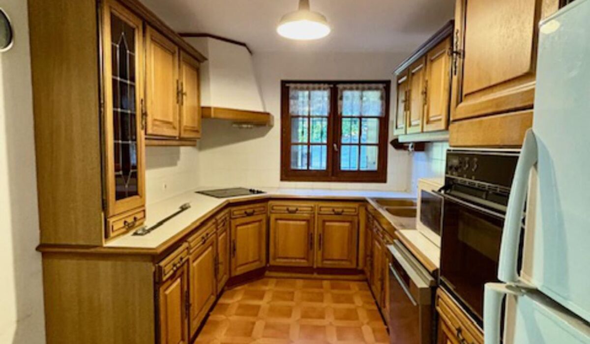 La cuisine indépendante dispose d'un accès à un cellier, au garage et à la buanderie.